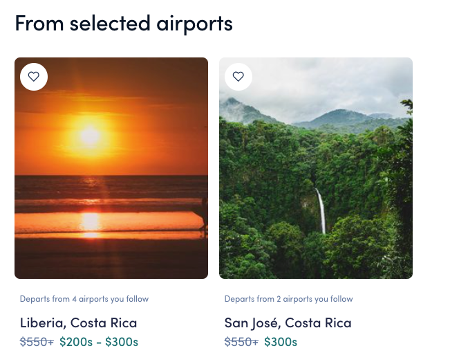 This deal features flights as low as $186 round-trip to SJO, departing from more than 80 cities, including: