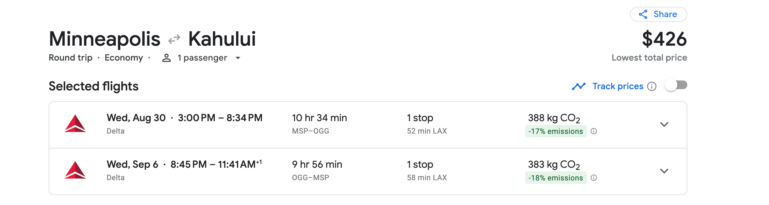 - Minneapolis-St. Paul International Airport (MSP) to OGG for $426.