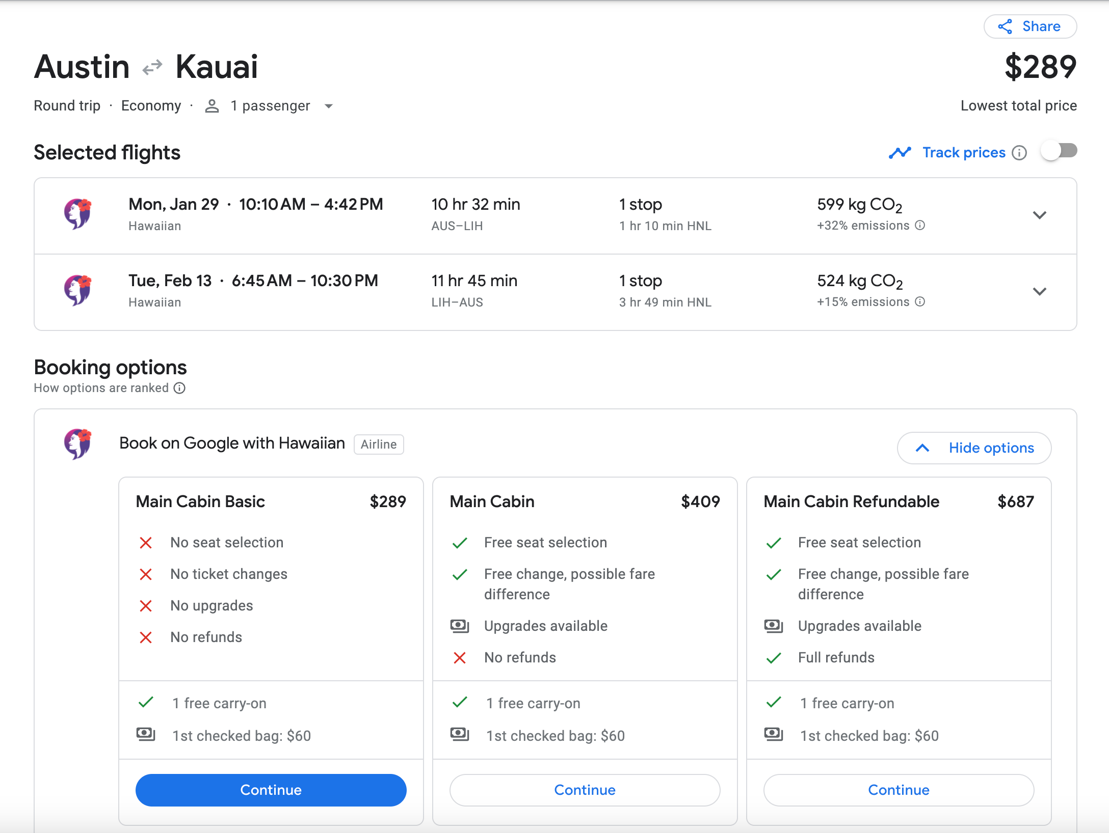 In the below example, you'll have a layover in Honolulu each way.