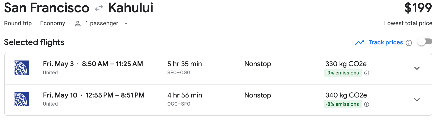 Let's start with an absolute steal of a deal. You can fly nonstop from San Francisco International Airport (SFO) to Kahului Airport (OGG) on Maui for just $199. We found good availability at this price in April and May.
