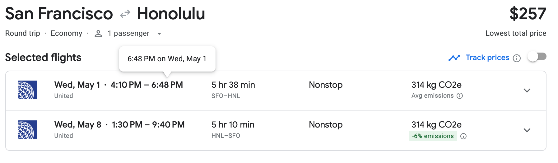 Remember, this is a United ticket, so you'll have to pay to check a bag. However, it's still worth it because the price is so low. According to Google Flights, this is about as low as this fare gets.