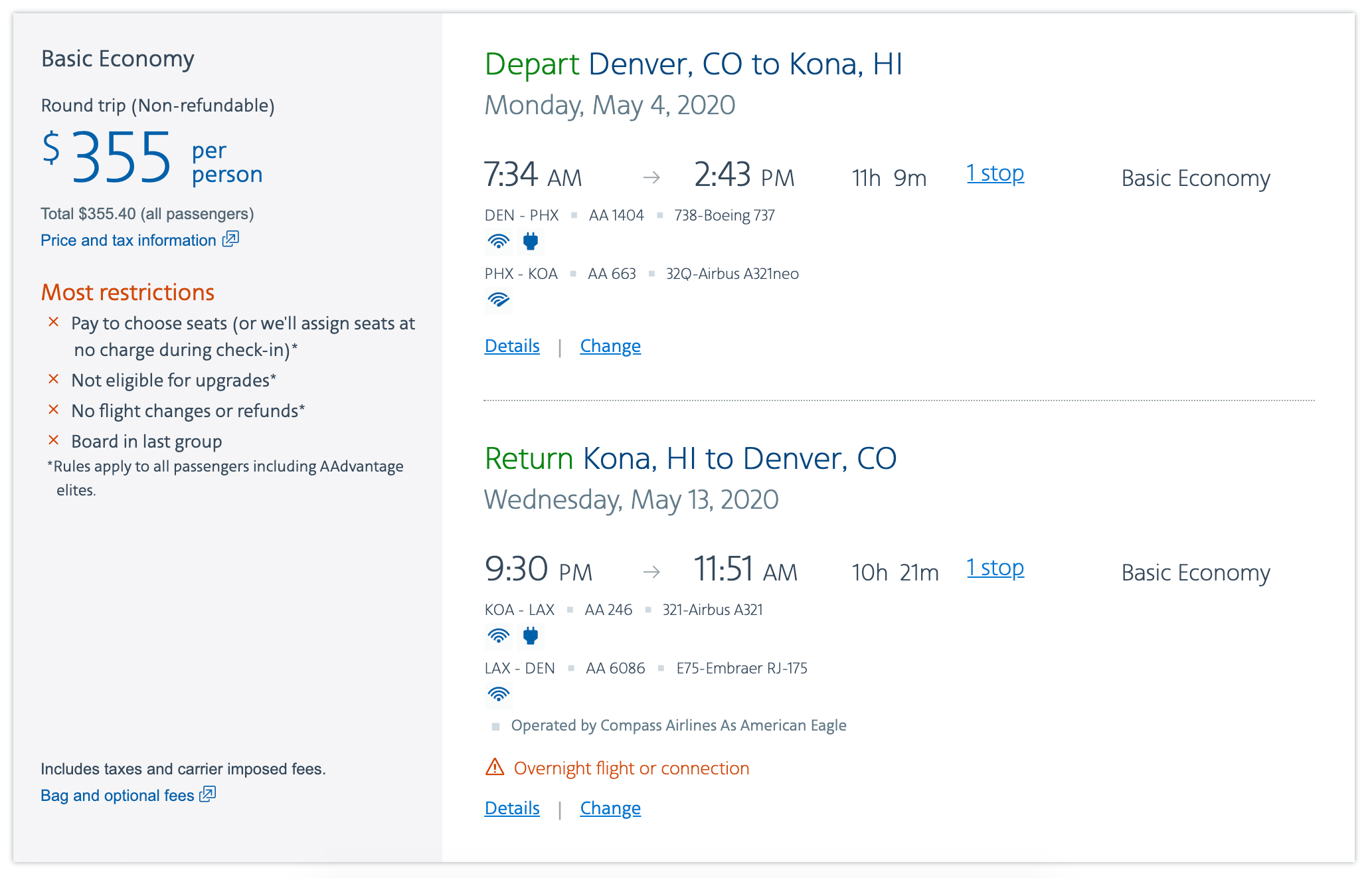 Denver (DEN) to Kona (KOA) for $355 round trip on American: