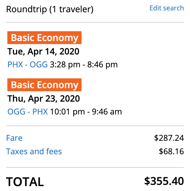 Phoenix (PHX) to Maui (OGG) for $355 round trip on United: