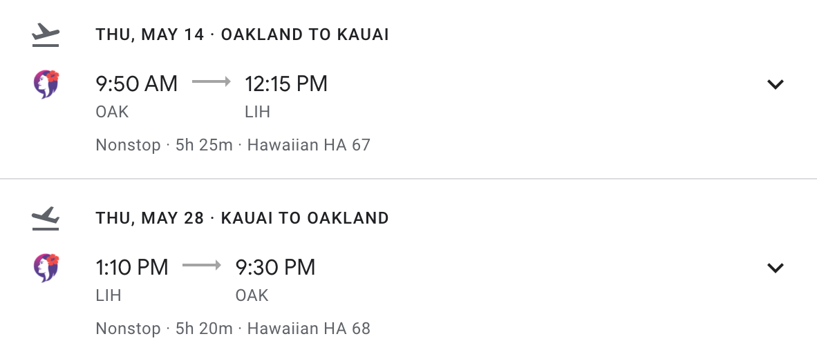 Oakland (OAK) to Lihue (LIH) for $277 round trip nonstop on Hawaiian via Google: