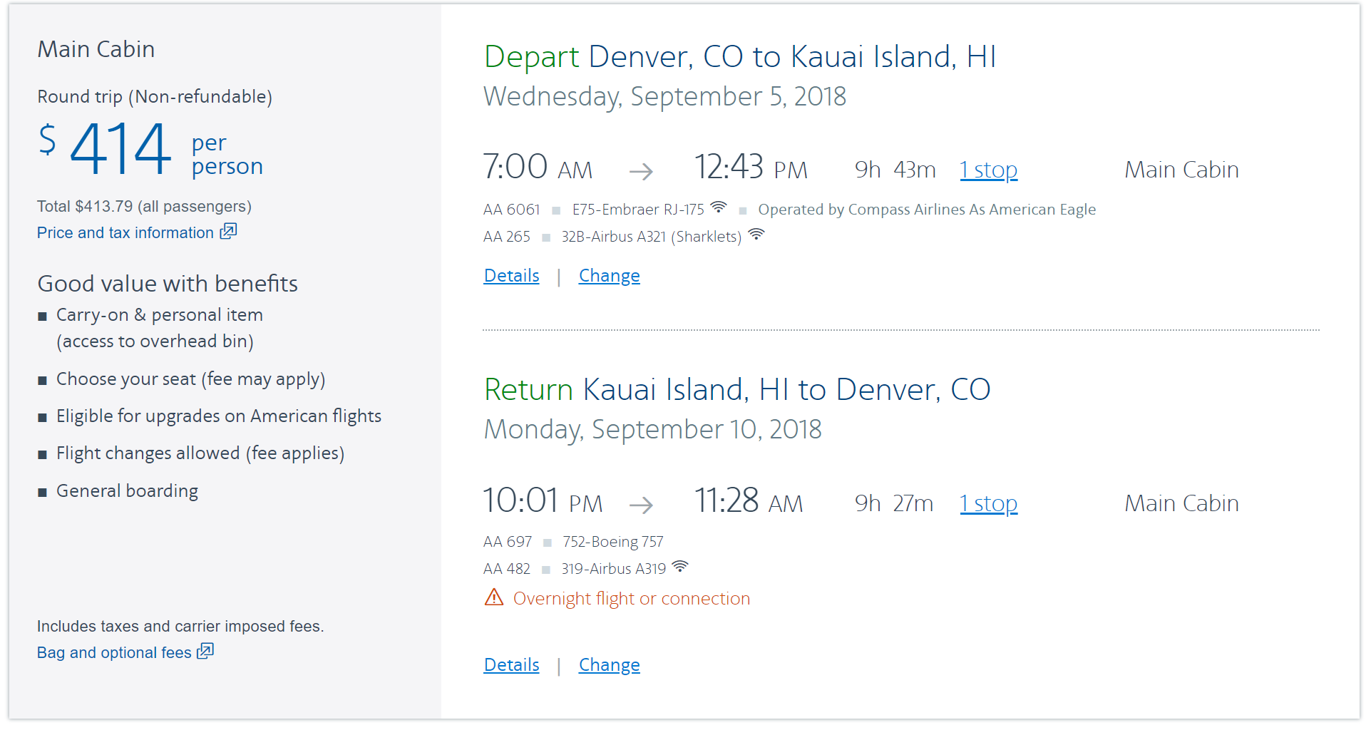 Denver (DEN) to Lihue (LIH) in September for $414 round-trip on American: