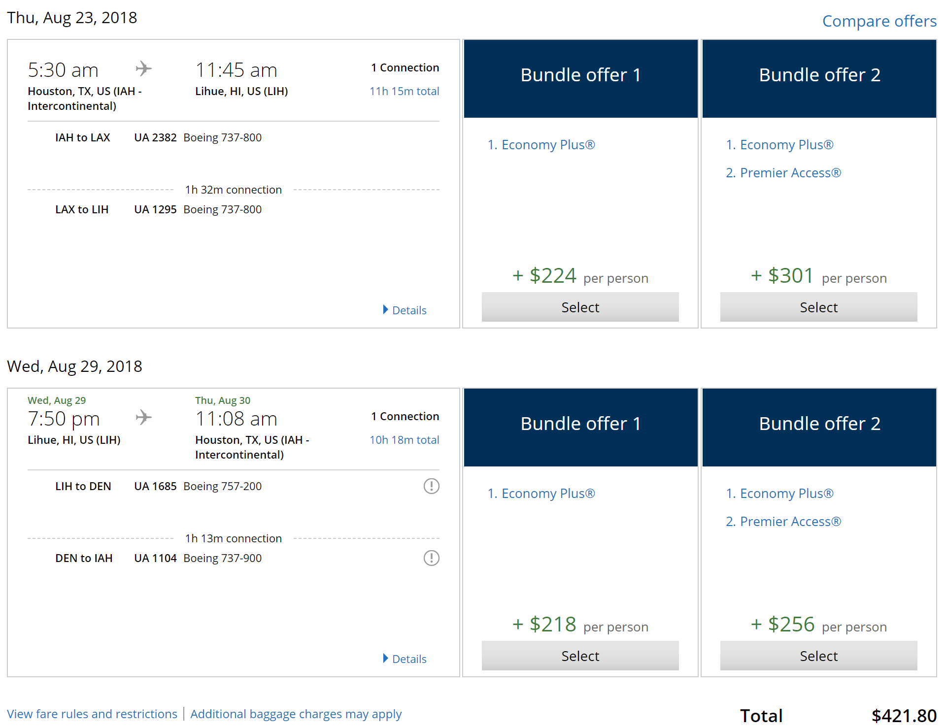 Houston (IAH) to Lihue (LIH) in August for $422 round-trip on United: