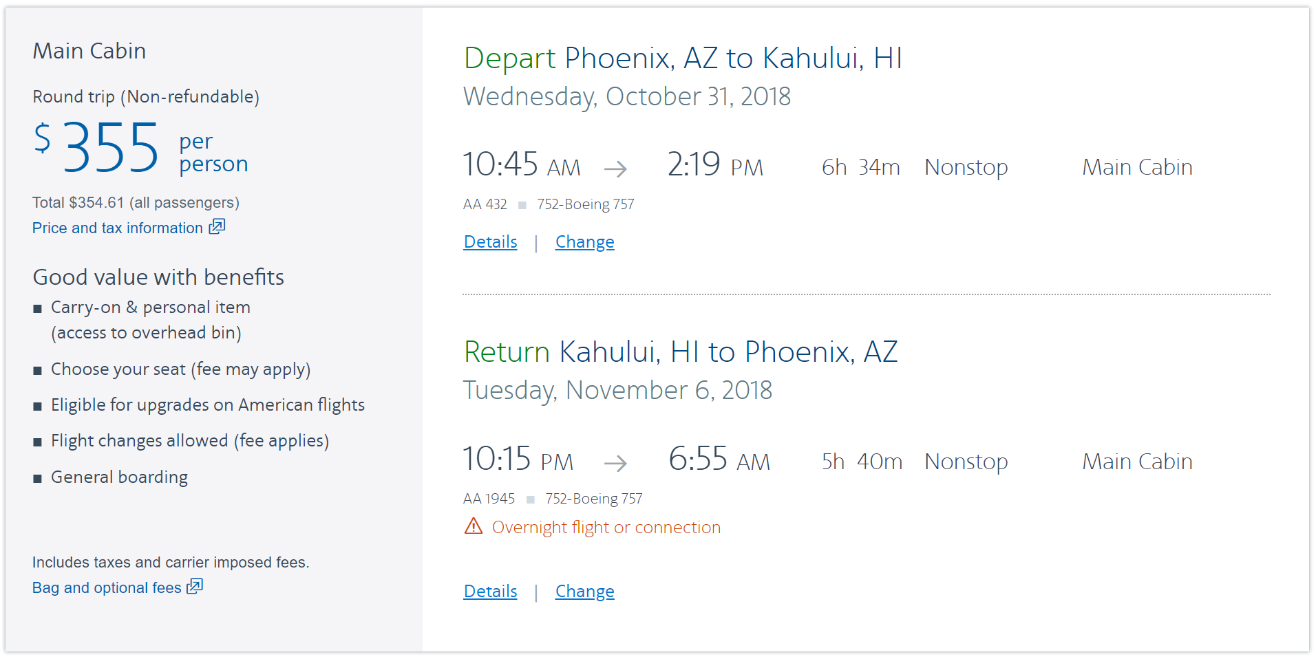 Phoenix (PHX) to Kahului, Maui (OGG) in October/November for $355 round-trip nonstop on American: