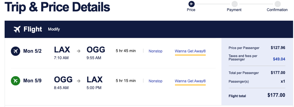 In conducting a test search for this story, I found a round-trip flight from Los Angeles to Kahului for $177 total, which accounts for $89 fares each way and roughly $50 in taxes and fees.