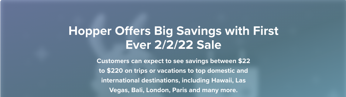 The "2/2/22" sale is kicking off a monthly series of travel discounts, so be sure to look out for future sales via Hopper on every repeat day of the month (3/3/22, 4/4/22, 5/5/22, 6/6/22, 7/7/22, etc.).