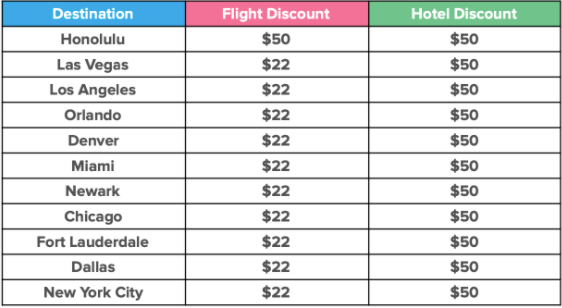 Customers can expect to see savings ranging from $22 to $220 on trips to Hawaii, Las Vegas, London, Paris and more.