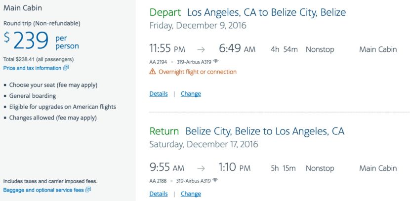 Los Angeles (LAX) to Belize City (BZE) for $238 round-trip in December on American:
