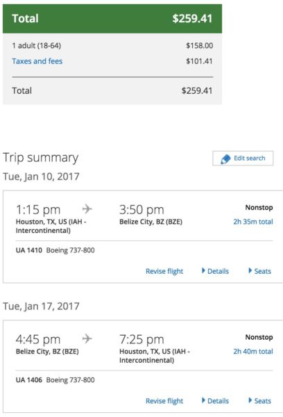 Houston (IAH) to Belize City (BZE) for $259 round-trip in January on United:
