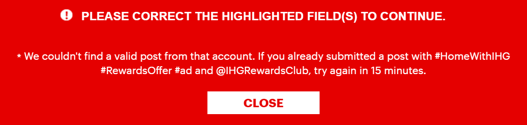 IHG will immediately verify if you don't have a valid posting. If you don't, you'll get the following error: