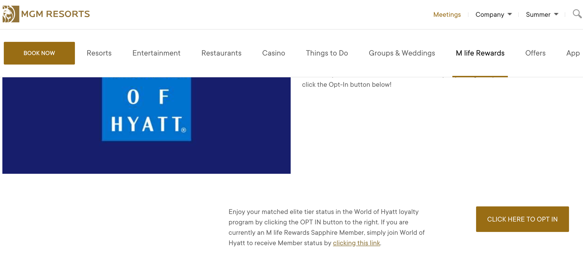 - Scroll down to World of Hyatt Tier Match and select "Opt In."