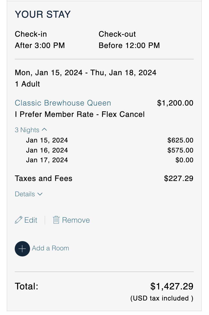 That same rate booked directly without logging into I Prefer first comes out to $2,206.33.