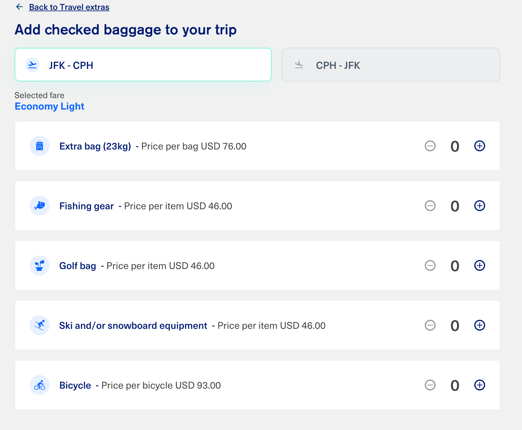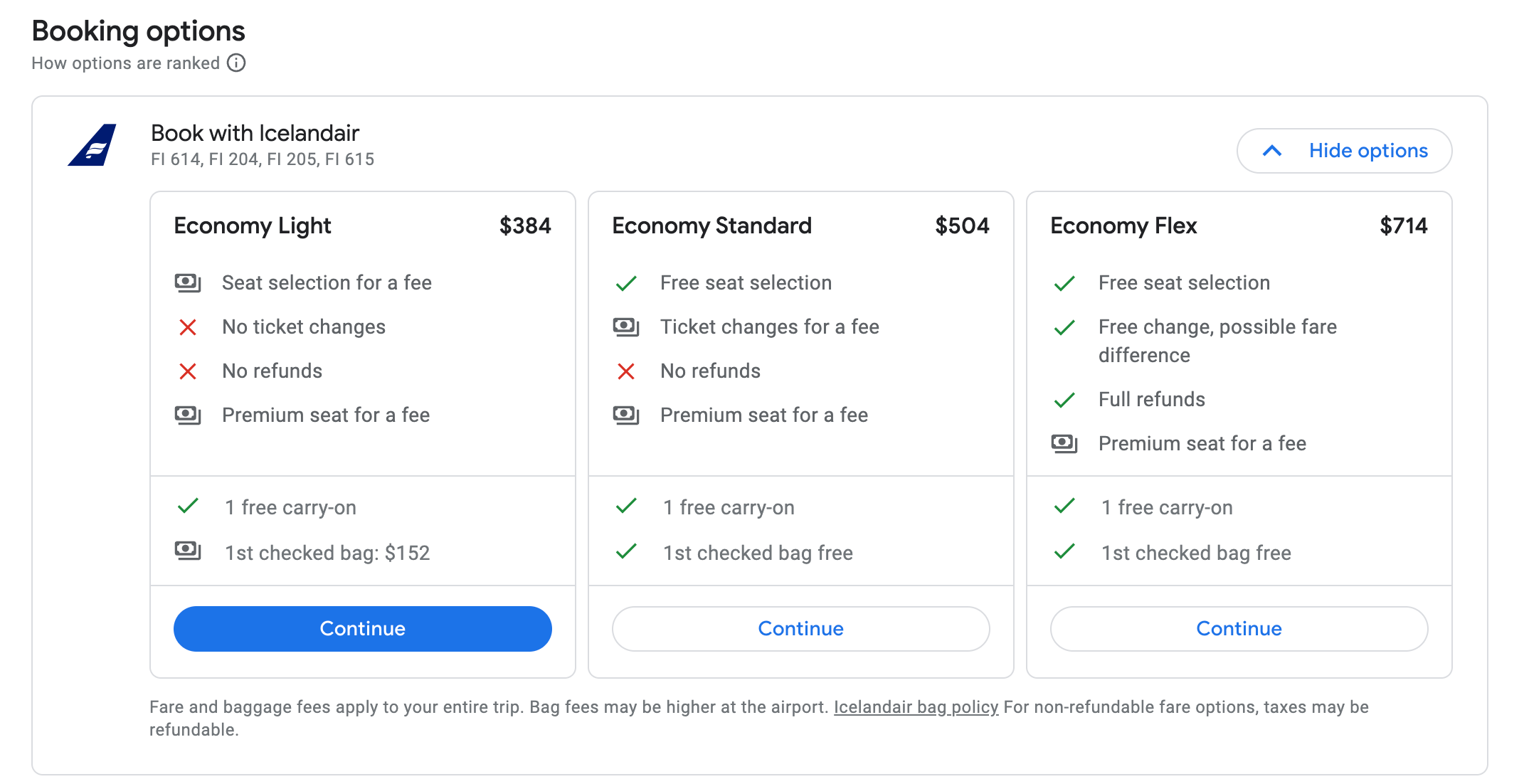 Despite the low airfare, there are ancillary fees you'll need to pay if you want to check in a bag or select a seat. These flights fall under Icelandair's Economy Light option, which is the carrier's most restrictive cabin class.