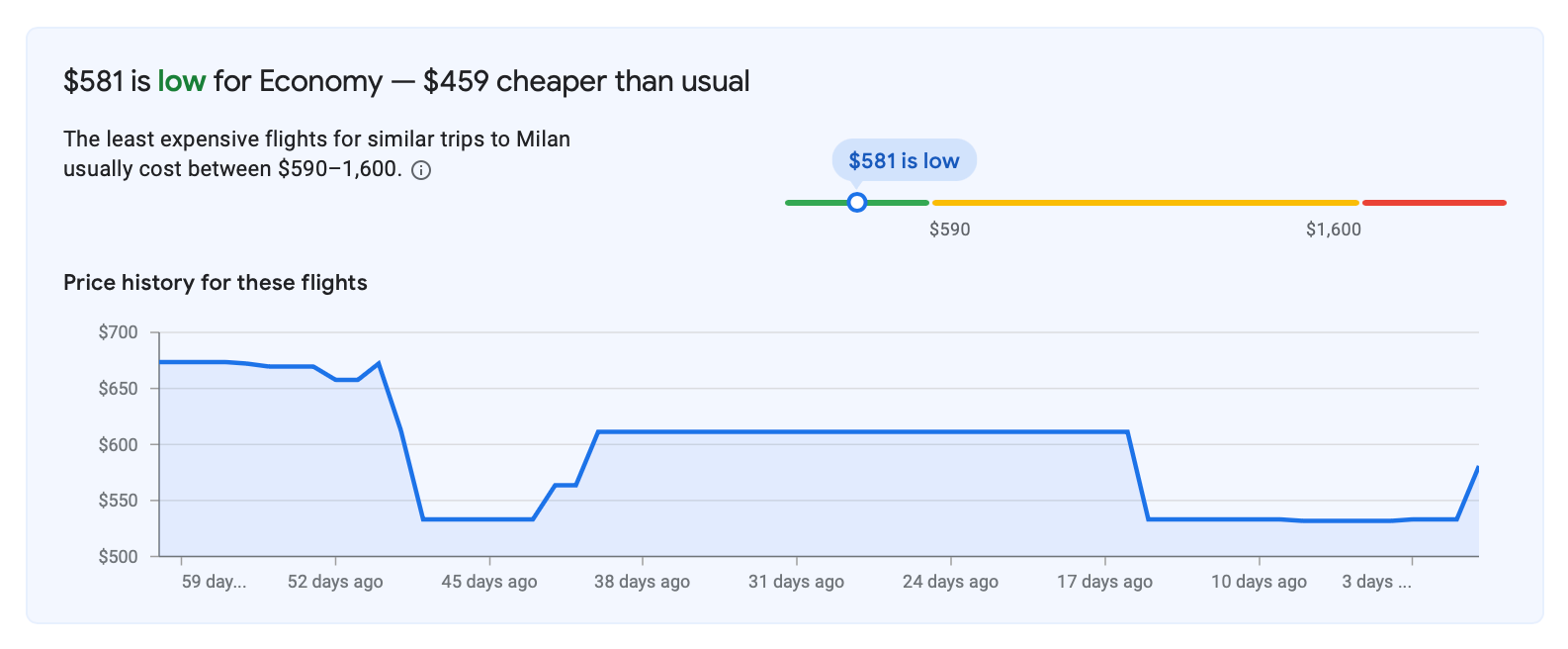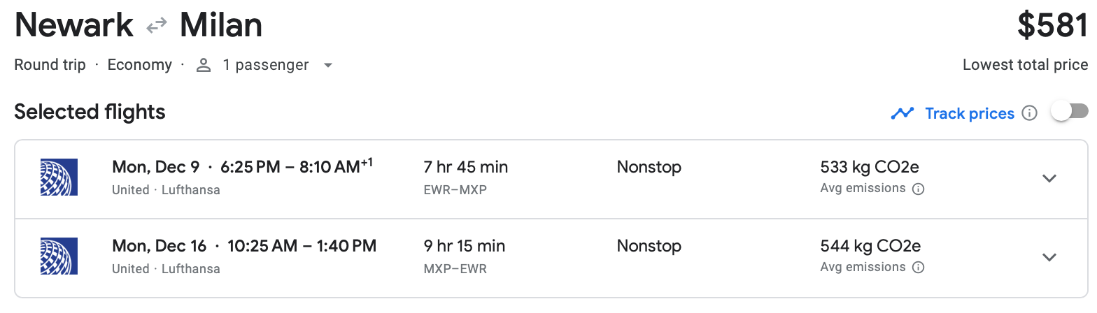 We also stumbled across this nonstop flight on United in December from Newark to Milan for $581 round-trip.