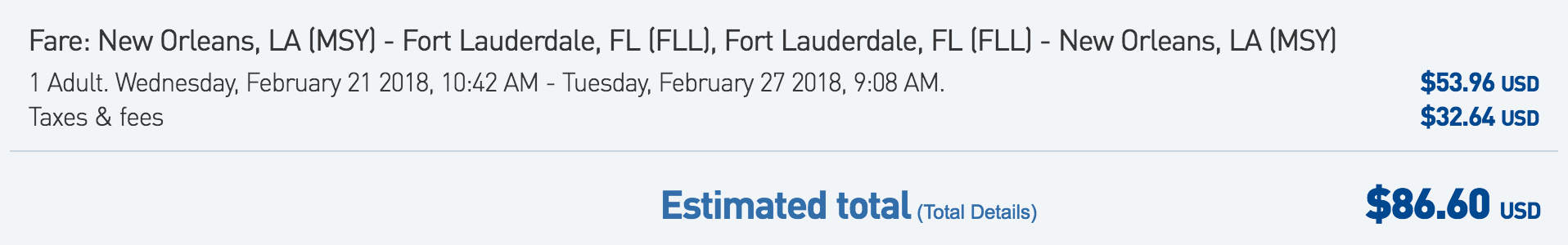 New Orleans (MSY) to Fort Lauderdale (FLL) for $87 round-trip: