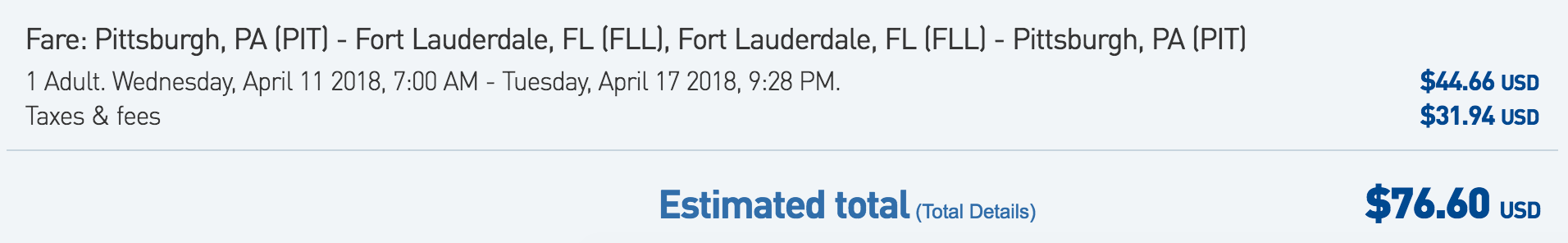 Pittsburgh (PIT) to Fort Lauderdale (FLL) for $77 round-trip: