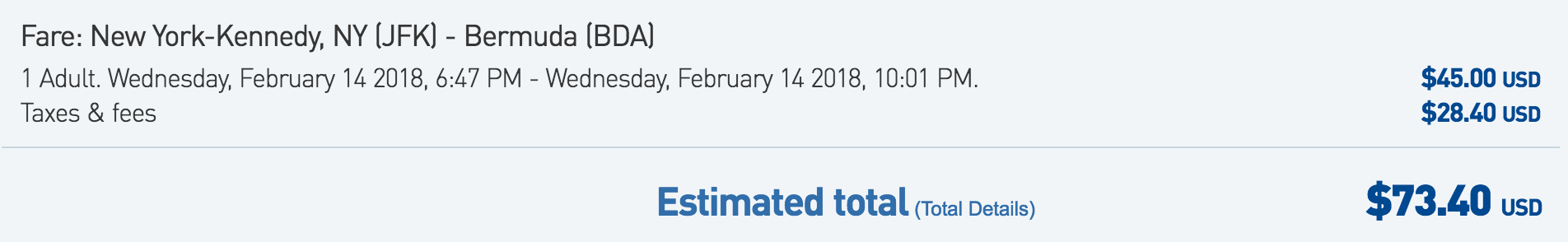 New York (JFK) to Bermuda (BDA) for $73 one-way: