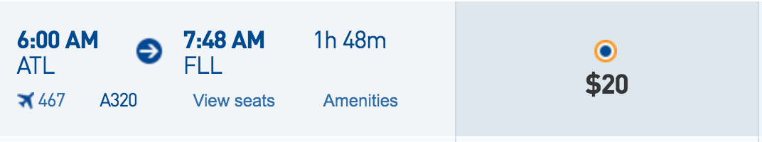Atlanta (ATL) to Ft. Lauderdale (FLL) for $20 one-way in Blue Basic: