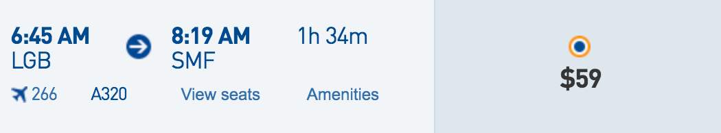 Long Beach (LGB) to Sacramento (SMF) for $59 one-way in Blue Basic: