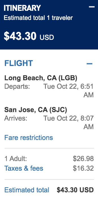 Long Beach (LGB) to San Jose (SJC) for $43 one-way: