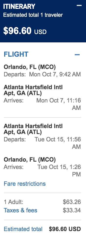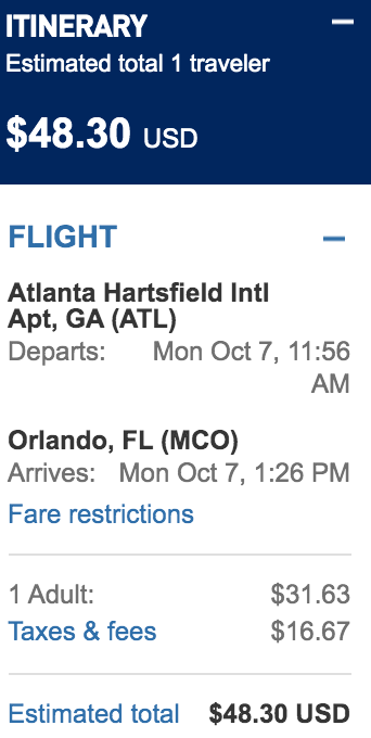 Atlanta (ATL) to Orlando (MCO) for $48 one-way:
