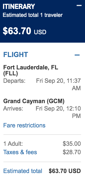 Ft. Lauderdale (FLL) to Grand Cayman (GCM) for $64 one-way: