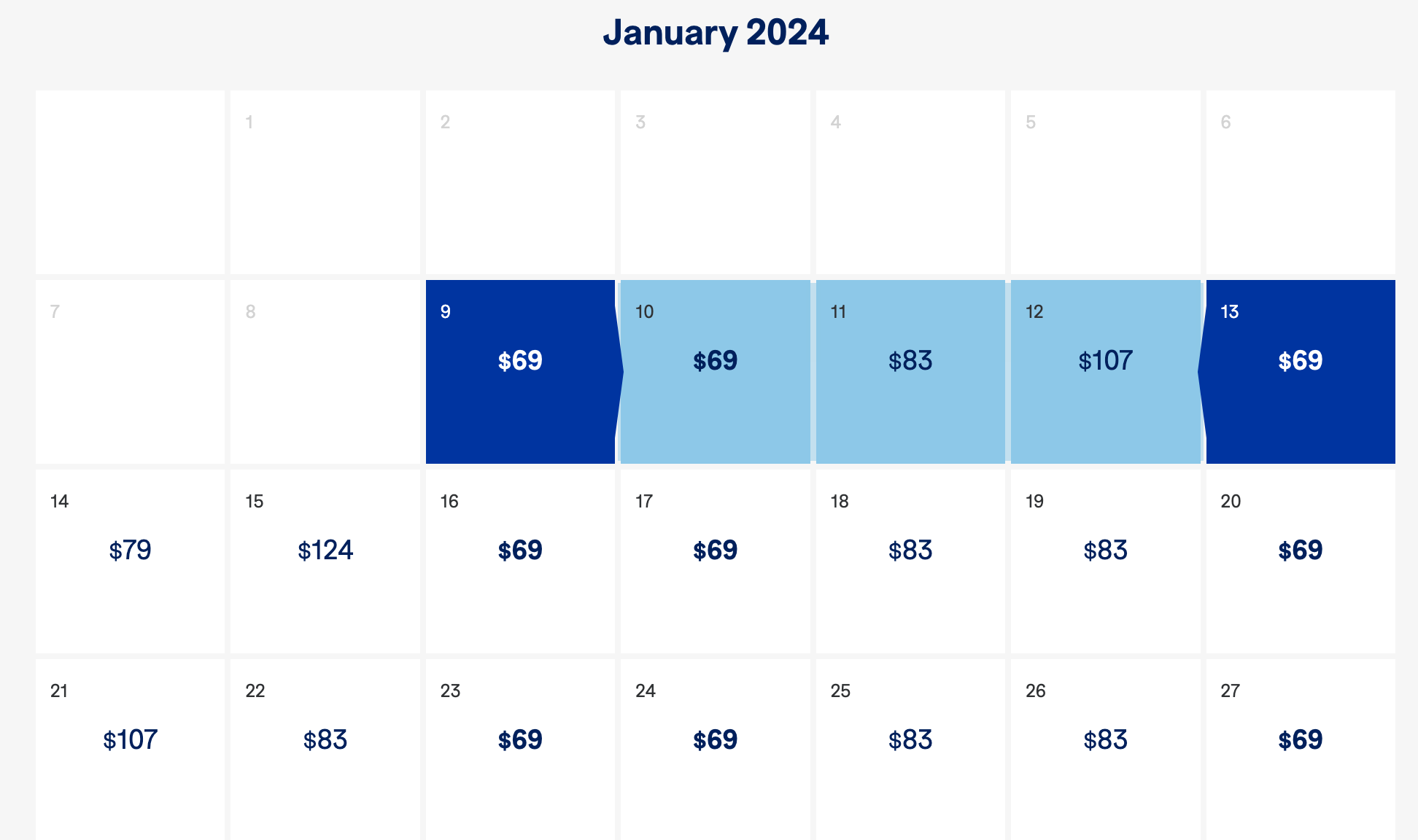 To snag this deal, you can search your desired route and travel dates; if you have flexibility, use the calendar feature to find the cheapest flights by month. Just be sure to enter the promo code to see the discounted fares.