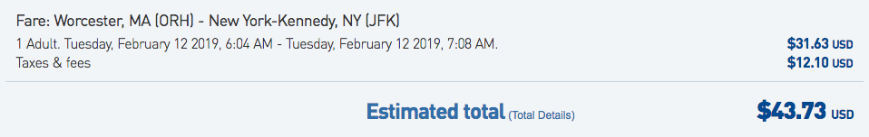 Worcester (ORH) to New York (JFK) for $44 one-way: