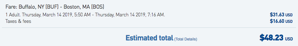 Buffalo (BUF) to Boston (BOS) for $48 one-way: