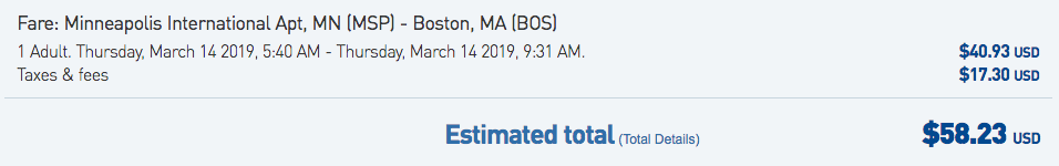Minneapolis (MSP) to Boston (BOS) for $58 one-way: