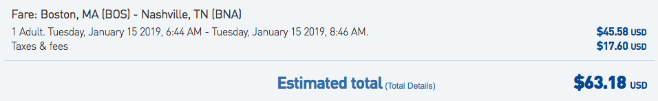 Boston (BOS) to Nashville (BNA) for $63 one-way: