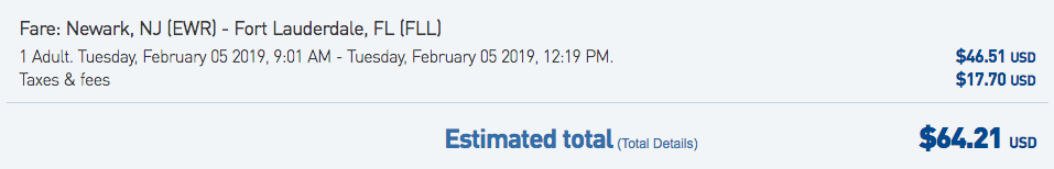 New York (EWR) to Fort Lauderdale (FLL) for $64 one-way: