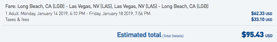 Long Beach (LGB) to Las Vegas (LAS) for $95 round-trip: