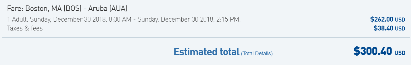 Boston (BOS) to Aruba (AUA) for $300 one-way: