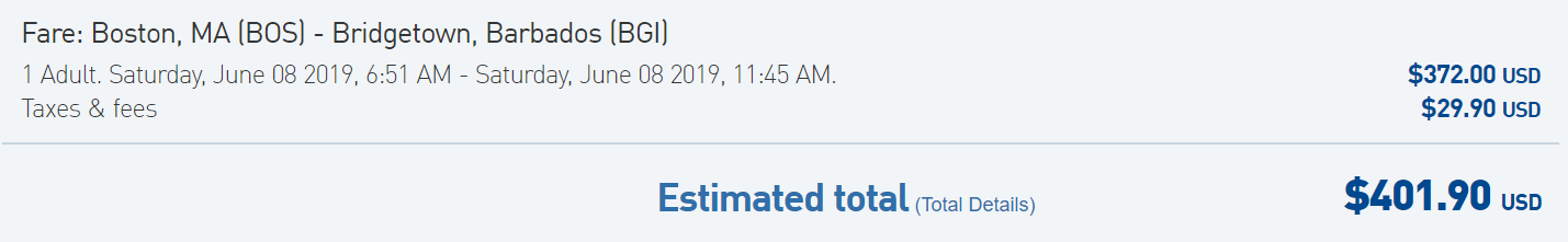 Boston (BOS) to Bridgetown (BGI) for $402 one-way: