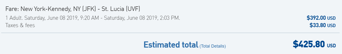 New York Kennedy (JFK) to St. Lucia (UVF) for $426 one-way: