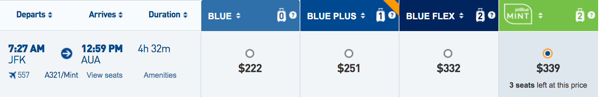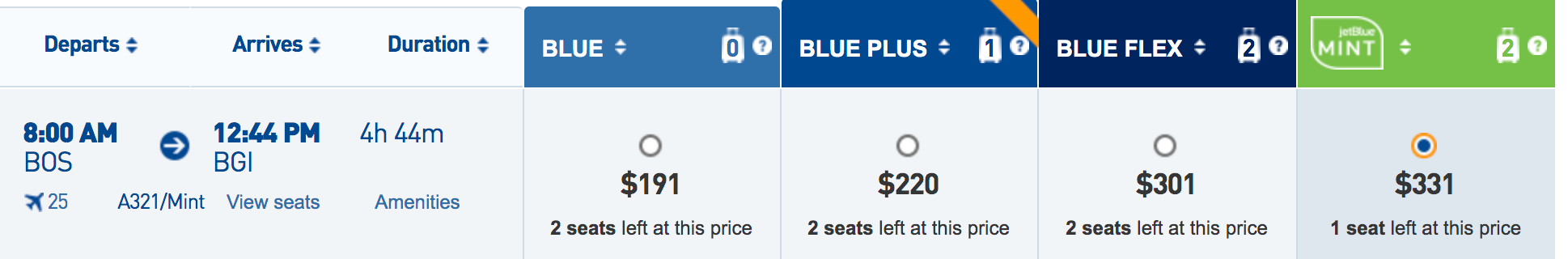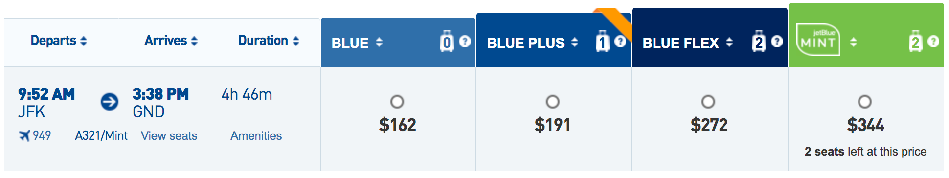 JetBlue is back with great sales in its phenomenal lie-flat business class product, Mint. We're seeing one-way deals from New York (JFK) and Boston (BOS) to Bridgetown (BGI), Aruba (AUA) and Grenada (GND) starting at just $331.