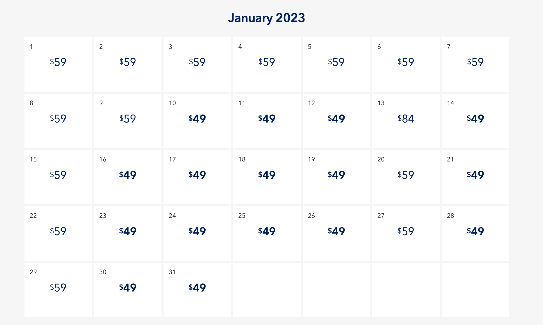 Fares depend on the route and day you travel, so we recommend looking through JetBlue's fare calendar to see which dates offer the cheapest fares for the destination of your choice.