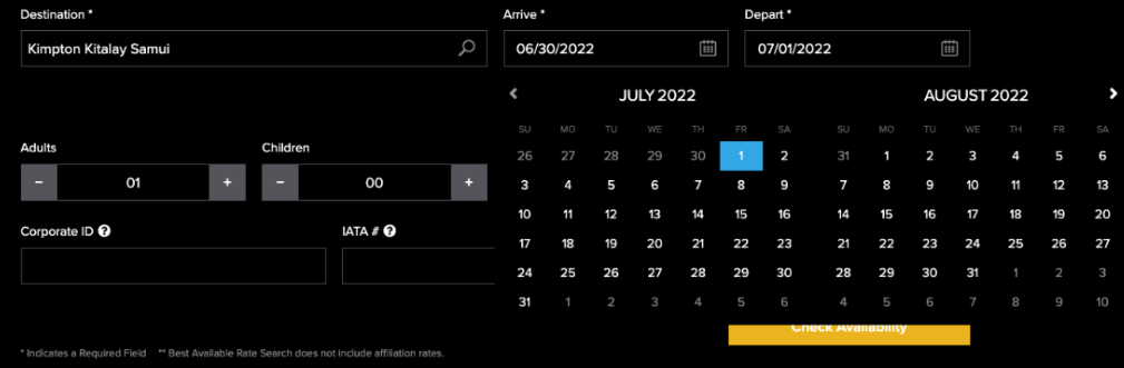 Once you’ve chosen the hotel and clicked the “Book Now” button, you’ll be prompted to input your dates at the top of the screen. Make sure your stay is within the promotion date range.