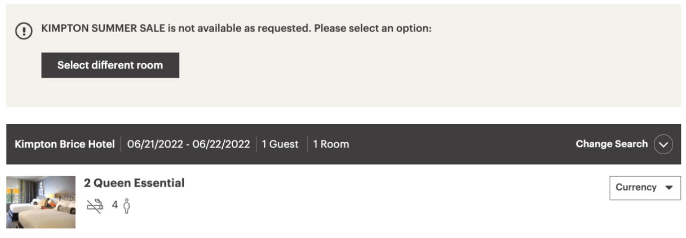 If you come across an error message, play around with the dates to make sure the deal is applied and you're not attempting to book blackout dates.
