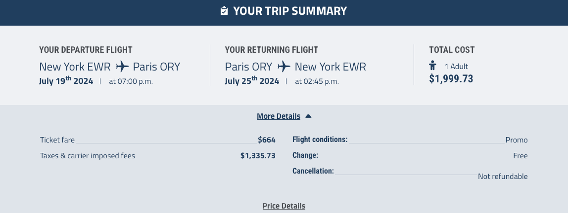 - EWR to Paris-Orly Airport (ORY) from $2,000 round-trip