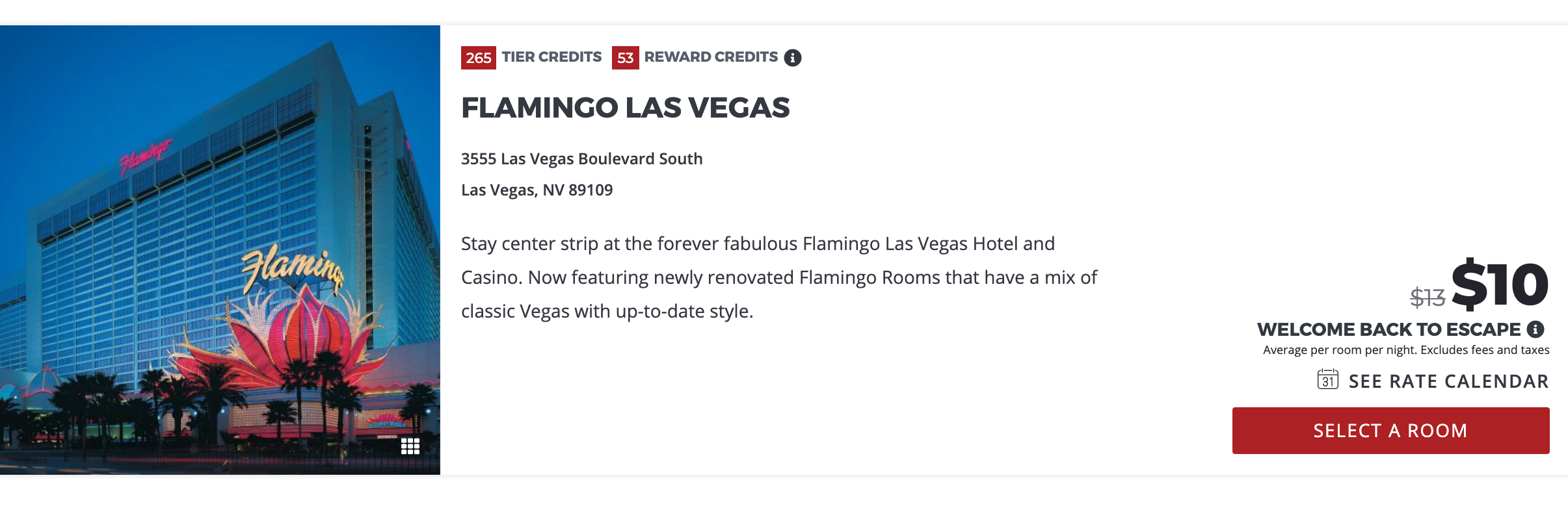 Finding $10 hotel rooms in the Caesars family of resorts (sadly, plus resort fee) is easy with a wide variety of dates pricing at that rate this summer at Flamingo, Rio and Harrah's. (Remember, it's easy to avoid a resort fee at the Caesars family of casinos by status matching your way into Caesars Rewards status.)