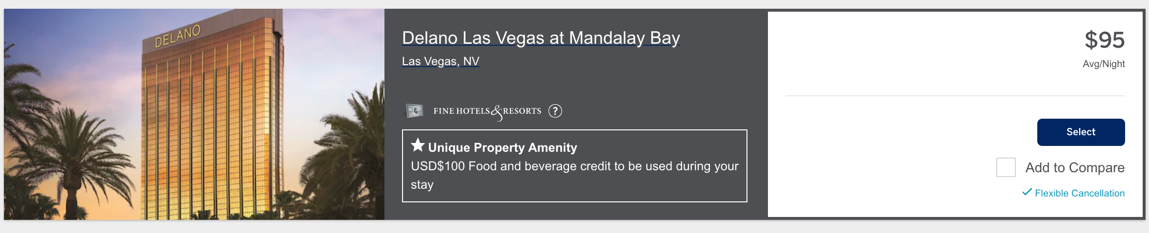 In other words, if you book via the Amex FHR program and spend around $100 (plus resort fee) on the room itself at a property such as Delano, Bellagio, or NoMad, you'll also get a full breakfast for two and another $100 to spend on dining at the resort.