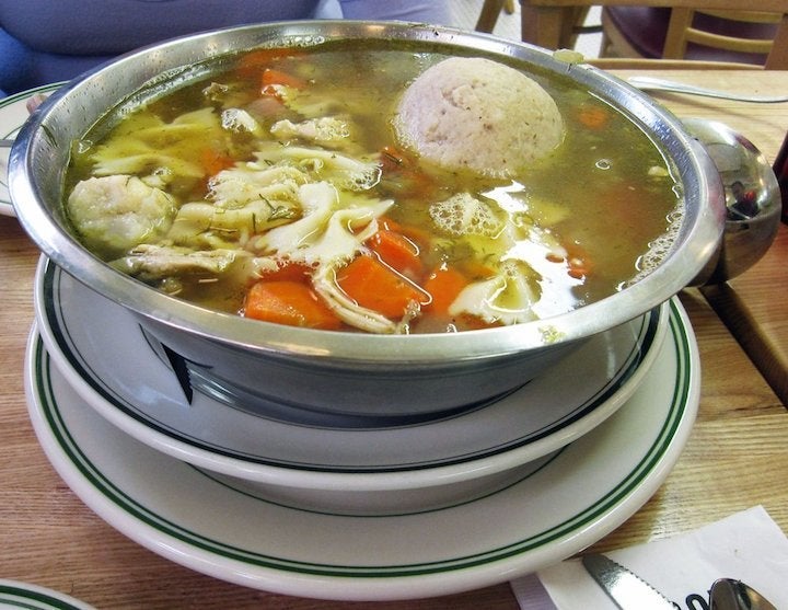 Order the Chicken Soup only if you've got an extremely large appetite (or plan to share with friends). The $17 pot of soup serves two to three, is made with kreplach dumplings, noodles, rice and kasha and comes with one ginormous matzo ball.