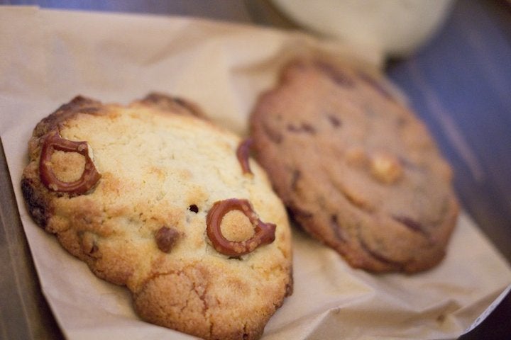 Each $3.75 cookie has a generous amount of chocolate chips, of course, plus macadamias, almonds, walnuts and sea salt. They're just the right amount of crispy on the outside and gooey on the inside.