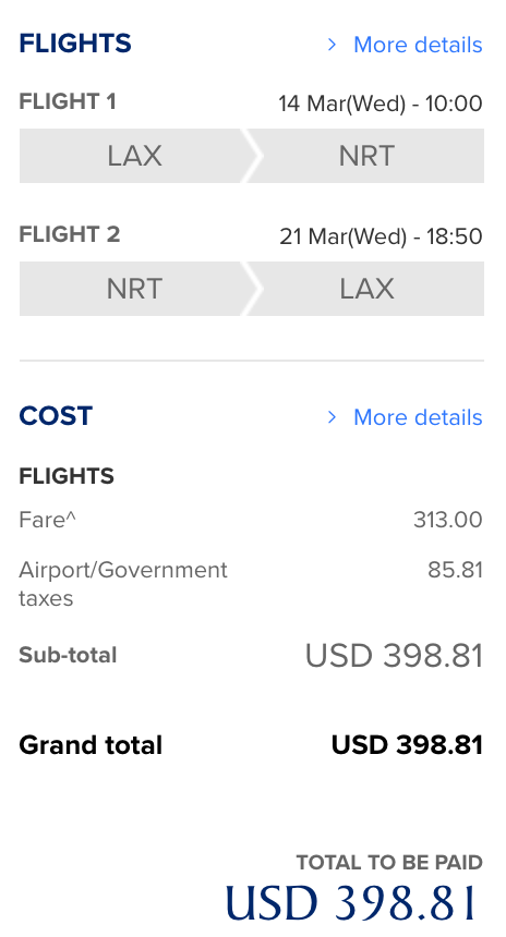 Los Angeles (LAX) to Tokyo (NRT) for $399 round-trip with Singapore: