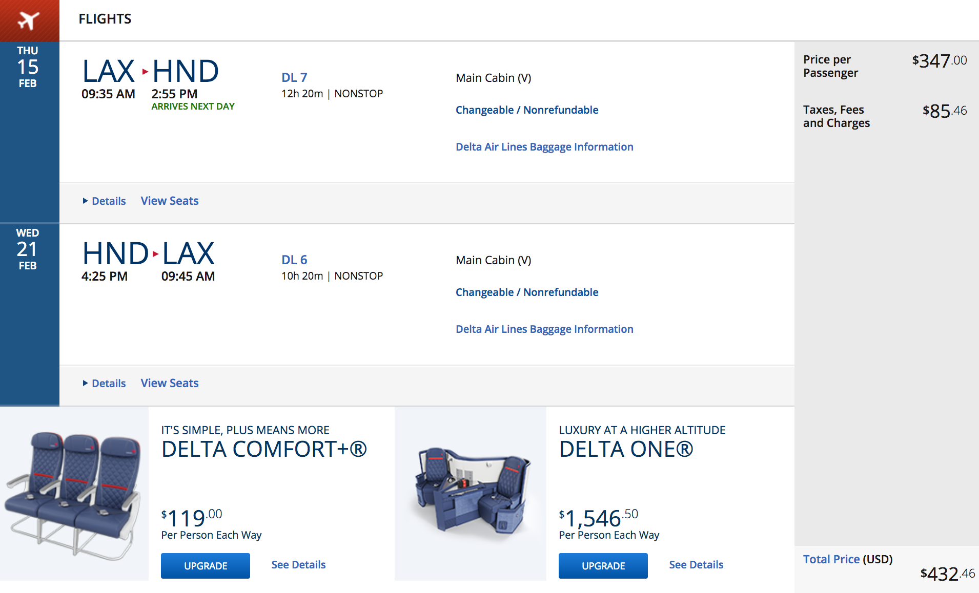 Los Angeles (LAX) to Tokyo (HND) for $432 round-trip with Delta: